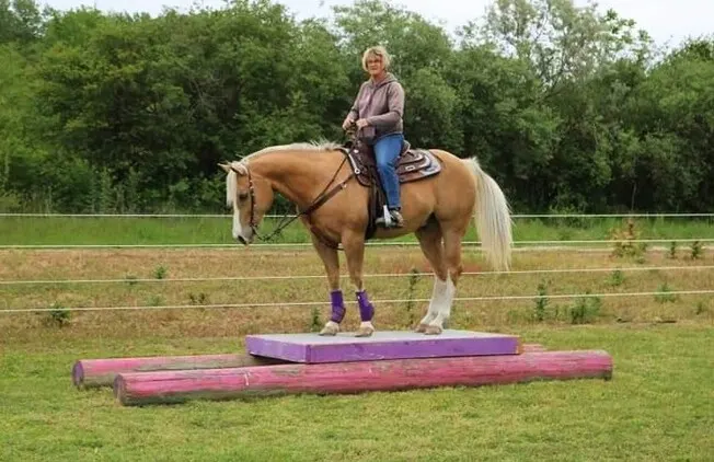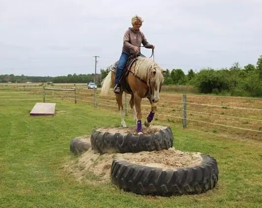 Talk about a dreamhorse... Roy Rogers' Trigger is right here!!! 4 white stockings and a blaze face will take you back to the glory days of the American Cowboy with CUTTER who is a registered AQHA Palomino GELDING, standing 14.3 hands tall and is in the prime of his life at 13 years of age. Cutter is very gentle and safe! We have used him in our lesson program to teach kids and beginners of all ages from 6 to 66 how to ride.
