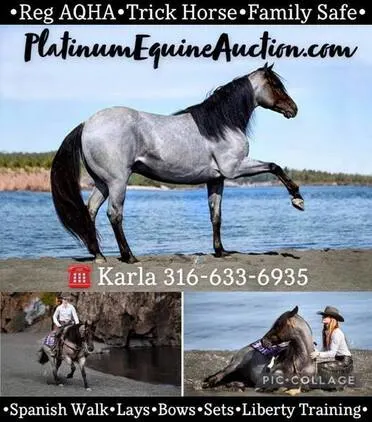 Blue is a 7 year old registered AQHA blue roan gelding! He is an absolute dream horse that we cannot say enough nice things about! To know him is to love him and he will absolutely melt your heart as he is the sweetest and most intelligent horse that you will find! Blue stands 15.1hh, is well built and sports that fancy blue color very well. We’ve hauled blue all over the country, from the black sands beach of MN , the badlands of South Dakota to garden of the gods in Colorado and every place in between! He hauls like a champ, never gets fussy on long rides, walks off the trailer quietly at a new place and acts like its home as soon as he arrives. Blue rides just about anywhere and anyway you want... use any bit, any bridle, no bit, no bridle... Blue doesn't care he is just here to please! He has a gorgeous trot, extended trot and lope complete with a nice steady spin. Blue does liberty circles (even while other horses are running around him), lays down on a tap cue, sits down on the bean bag, does the spanish walk and will even come pick you up off the mounting block! He has lots of liberty and natural horsemanship training and will bond with his rider easily. The possibilities with Blue are endless you can take him into the show pen, to the ranch or down the trail but the one possibility that is 100% for certain??? Is that you are going to LOVE him! We Guarantee it! Call Karla with any questions at 316-633-6935. Located in Cynthiana, KY.