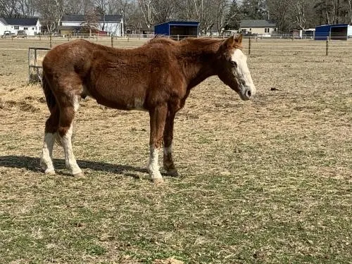 Lucky is an awesome older gentleman that loves attention. No health issues to our knowledge. we had the detisit out and he is currenlty mossing 6 teeth, but it doesn't seem to effect his eating or attitude. He stands for farrier, vet and dentist. He will stand with you all day to be loved on and groomed.