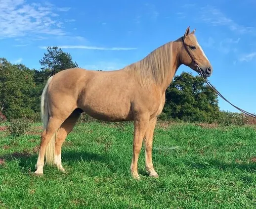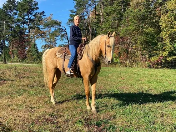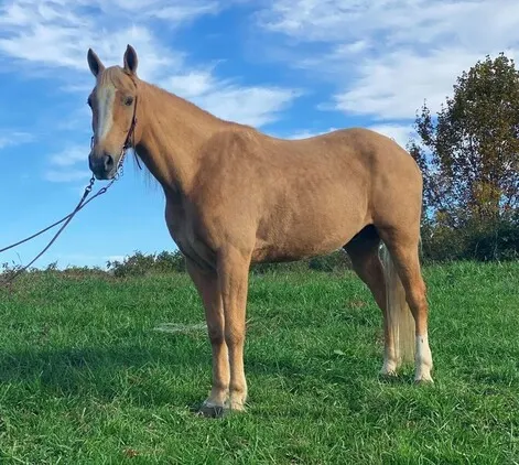 Cadillac Jack is a 8 year old palomino gelding. Standing at 16hh and built like a tank. Jack is suitable for any rider, big or small, young or older. If you know the basics, he will take good care of you. He will cross any log, ditch, or creek with zero hesitation. Jack will stand tied, crosstied, and loves getting baths. He will stand exceptionally well for the farrier, to be tacked up and mounted. Jack has been ridden all over the Big South Fork, Knott County Trail ride and ridden in many local parades. Jack stands like a gentleman on a picket line, or tied to the trailer for overnight camping trips. In addition to riding Jack is also broke to harness and will pull any type of implement that you hitch him too. He has a smooth 4 beat gait that is natural as they come, and will lope off very nicely.