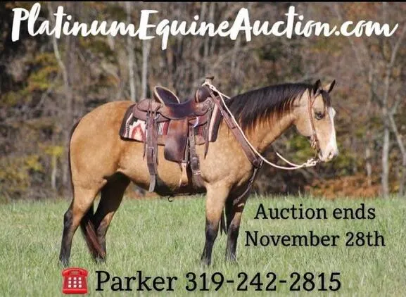 Place your bid at PlatinumEquineAuction dot com Auction ends November 28st $3500 Starting bid BU War Painted (Sugar) is a super stocky built, 14.3hh, 13 yr old, Buckskin Mare that is registered with the APHA. We bought Sugar from a friend in Tennesse...
