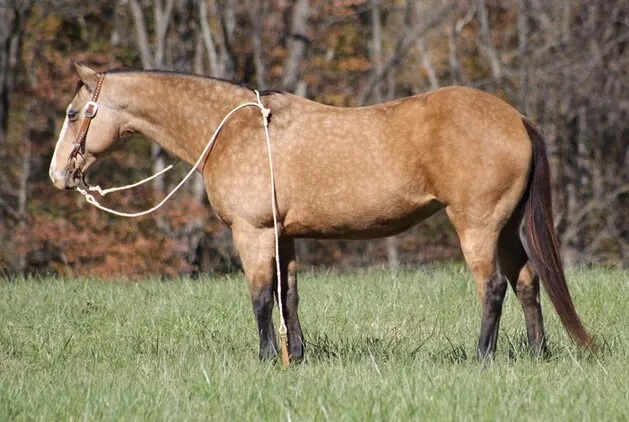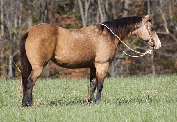 BU War Painted (Sugar) is a super stocky built, 14.3hh, 13 yr old, Buckskin Mare that is registered with the APHA. We bought Sugar from a friend in Tennessee and Sugar has been his wifes horse. She has had her on several 3-5 day camping trips/trail rides, used her around their stockyards to pen cattle and load trucks. She is easy to catch, clip, bath, tack-up, load, and handle in anyway. She will flatfoot walk slowly or he will move on out when asked. She has a easy jog, a nice lope, reins around good and backs. On the trails she is always great! Sugar has been exposed to all kinds of wildlife such as deer or turkey or other animals like cows or dogs and will go anywhere that she is asked too. She has been rode many miles in the mountains of Eastern Kentucky and encountered every obstacle possible on the trail. She will go up or down even the steepest slopes, across deep creeks, over downed trees, and over all types of rough terrain while still being sure footed. She has been rode in traffic, and is very traffic safe around cars, semi, log, and dump trucks. She has a great personality and a great attitude about whatever she is asked to do. Feel free to call Parker 319-242-2815 with any questions. Located in Brodhead, KY.