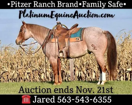 Place your bid at PlatinumEquineAuction dot com Auction ends November 21st $3500 Starting bid Diamonds Costalot aka “Jax” is a big made, gorgeous, red roan, AQHA gelding! He is 8 years old and stands 15.1 hands. He was born on the Pitzer Ranch and ca...