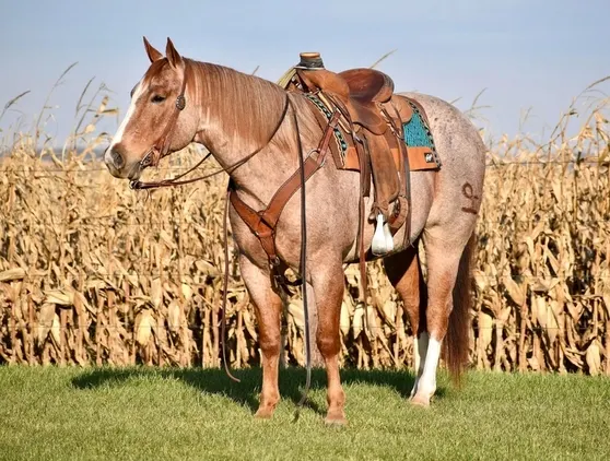 Diamonds Costalot aka “Jax” is a big made, gorgeous, red roan, AQHA gelding! He is 8 years old and stands 15.1 hands. He was born on the Pitzer Ranch and carries the Pitzer Ranch brand. He is a grandson of the great Mr Baron Red. I has been working with this horse on and off for years for a very good customer and friend. He is extremely gentle and safe for anyone-even the kids! Jax has a great head on his shoulders and takes on obstacles with confidence and ease. He has been used a great deal to pony young colts and did extremely well. Jax has been started in the team roping. He has also been pasture roped on. Jax is the ultimate ranch horse with his handle and calm nature! He has done all the ranch chores including checking on fence and checking on broodmares. Jax couldn’t be better outside. He is fantastic on the trails and crosses creeks and fallen logs with ease. I think this horse would excel in whatever you choose to do with him! He is one the whole family would enjoy! We are excited for Jax to find his forever home! Please call Jared at 563-543-6355 with any questions on Jax. Located in Bernard, IA. Please like Jared Meyer Performance Horses on Facebook and YouTube. Thank you for your interest!
