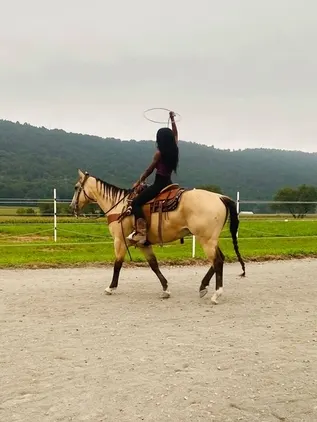 Mac, is a stunning 15.1hh 9 yr old gelding. He is a trail machine and has been all over the Pennsylvania mountains camping and trail riding. This gentle boy will pack a child or adult safely anywhere he is pointed. Mac loves to work in the arena and has a smooth flying lead change. He knows the barrel pattern, will work a cow, ropes the dummy, and does anything that is asked of him. His easy going personality makes him a barn favorite and a go to for anyone who stops in to ride. He stand great for the farrier, a bath and to be clipped. He is traffic, dog and atv safe. Mac is current on vaccinations, dental, farrier care and dewormer and has a current coggins.