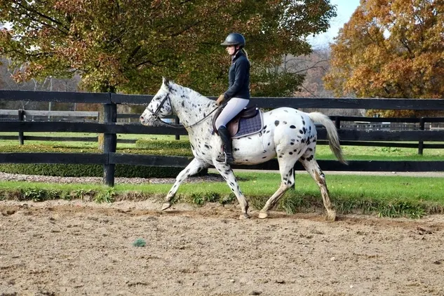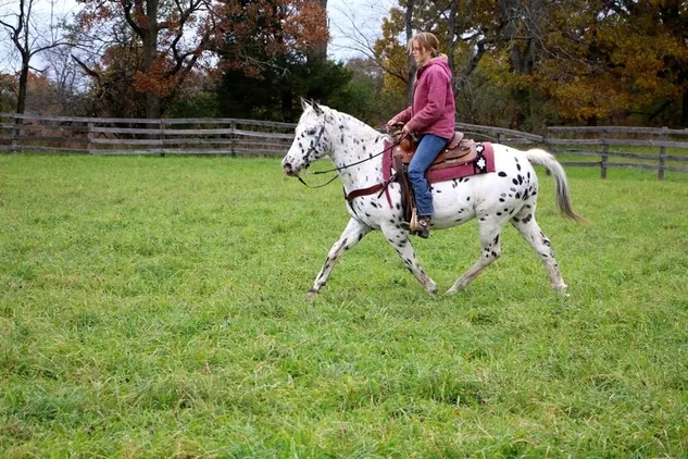 Meet “Pongo” this 14.1hh 13 year old stocky made Leopard Appaloosa Gelding is sure to turn heads wherever you take him. Not only dose Pongo have striking coloring he has beautiful confirmation. Pongo also has has extensive mileage out on the trails he has been camping picketed ridden through the mountains water and crackling brush. He’s been exposed to all kinds of wildlife bicyclists and traffic. Not much if anything will bother this boy. He has three very comfortable gates almost as smooth as floating on a cloud. He will walk trot Canter stop and back with ease. He neck reins and direct reins. He rides English western and bareback. He has been ridden by countless children and is an excellent teacher for those young and old alike. This is the type of boy you can give a bubble bath to haul off to a show then let sit for a week and then take out on the trails. He has years of experience and he’s a happy go lucky type of teacher. He loves to jump and has lots of experience in the 2 foot divisions. He’s also been shown 4-H In gaming trails and bareback.