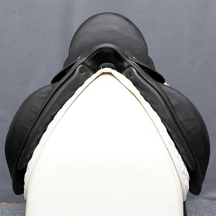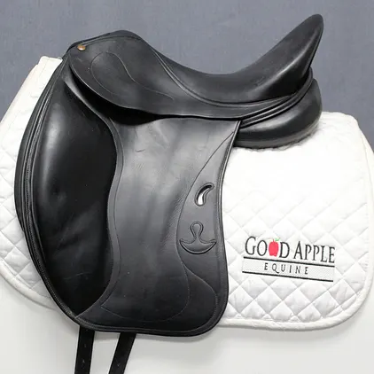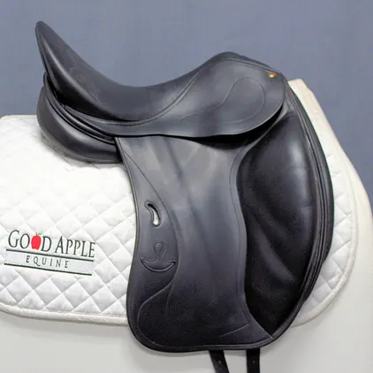Make: Bruno Delgrange Model: Syracuse Type: Monoflap Dressage Saddle Condition: Very Good Used Condition Seat: 17.5ins Width: Medium Flap Length: 17ins.