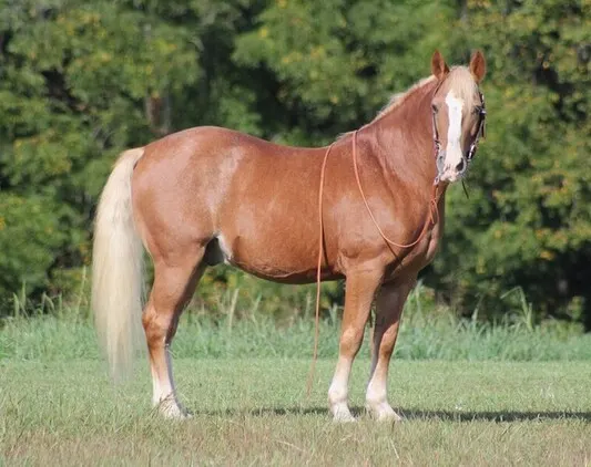 Spud is a 14.2hh, TANK weighing 1050lbs, this sorrel roan, 9 year old, crossbred horse gelding is as pretty as a new penny! Spud is an excellent trail horse, he has saw everything possible on the trails. He will cross creeks, ditchs, logs and navigate rough rocky areas. He is safe in traffic safe whether that be trucks or cars. He has a very good handle, neckreins around and has a good stop. He has a soft jog that is smooth to ride and a nice lope! Spud has been used around cattle and had a rope thrown off of him and has done some sorting and loading. In addition to trails and ranch, Spud is also broke to drive and is an excellent driving horse! Spud has been exposed to all kinds of wildlife such as deer or turkey and will go anywhere that he is asked too. He has been rode many miles in the mountains and encountered every obstacle possible on the trail. He will go up or down even the steepest slopes, across deep creeks, ride out in lakes, over downed trees, and over all types of rough terrain while still being sure footed. Feel free to call Parker at 319-242-2815 with any questions. Located in Brodhead, KY.