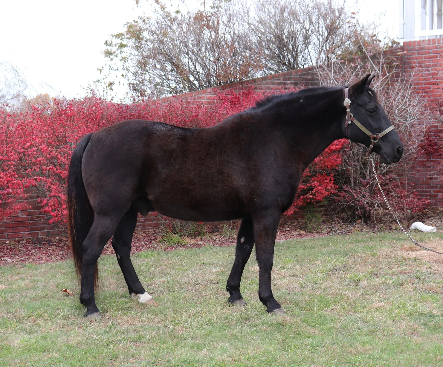"Sammy" is a good-looking black Missouri Fox Trotter gelding. He is built like a quarter horse and is 14.3 the perfect size for trail riding. This sweet boy is gentle and safe for about any level rider. He has been on many hunt rides in the northwest and can handle anything that you throw at him. He is sure-footed on even the more challenging trails. He will walk on a loose rein with quarter horses and he has a wonderful foxtrot with a natural head shake. He has a soft lope like a quarter horse. He can go for months without riding him and he will be the same gentle broke horse when you ride him again. He has an easy-going disposition. He gets along with other horses. He stands quiet for mounting and loads and hauls the best. Call (573)225-3534 for any other information.