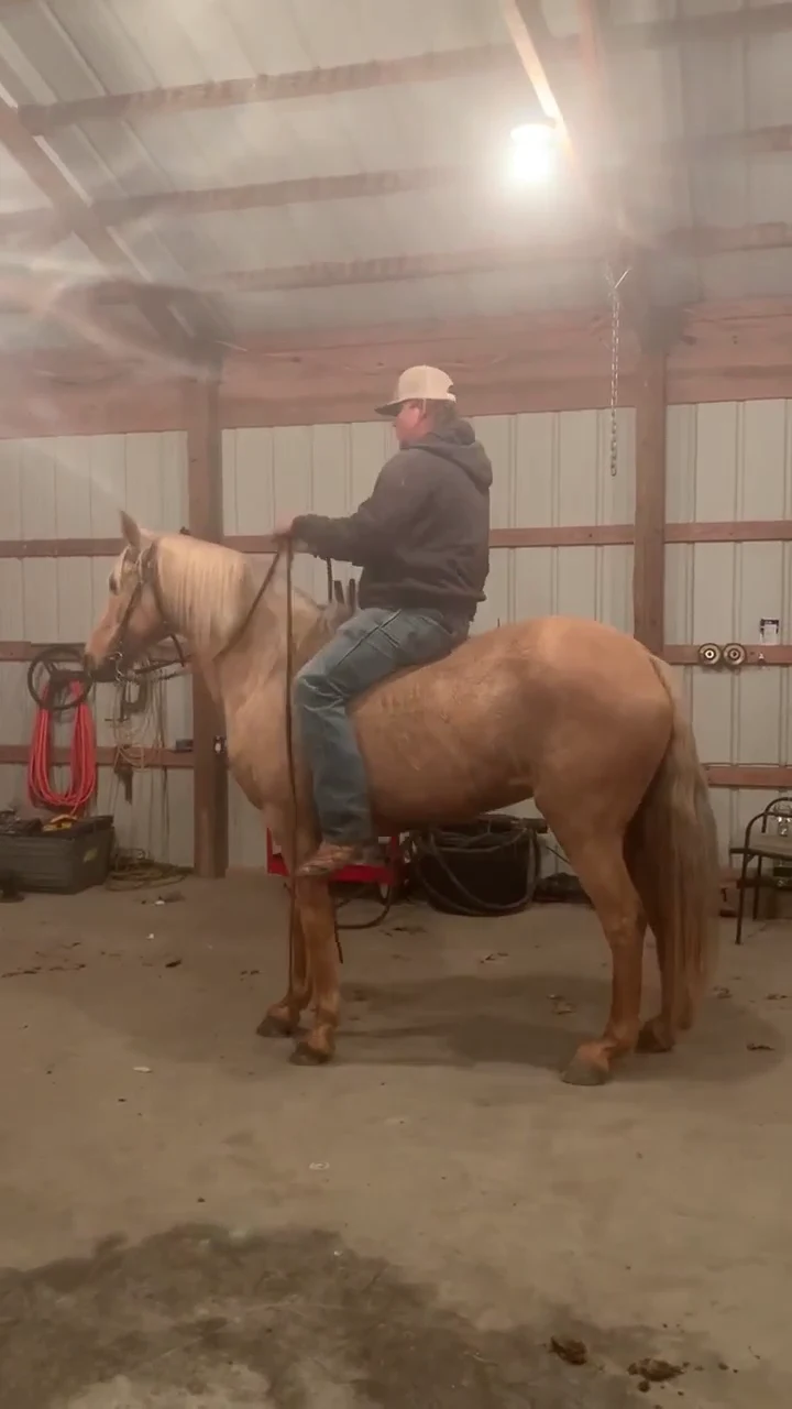 "Polly" is a 10-year-old Missouri Fox Trotter mare. She is a beautiful golden palomino. She stands 14.2 hands tall and she is super safe and gentle for the entire family. She one hand neck reins. She has a nice smooth gate that is comfortable to ride all day. She goes wherever you point her. Polly has been on overnight camping trips and she will stand on the picket line. She does not spook at anything. She stands to be mounted and dismounted. She rides bareback with a halter and lead rope. She will ride in the front or in the back with other horses. She will also ride out alone. She has been around cattle and you can shoot off of her. She loads and hauls well. This beautiful girl would fit perfectly into a family looking for a safe trail riding horse. Call (417)260-7030 for any other information.