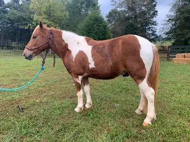 Here is your once in a lifetime... gaited pony!!! “Waylon” is the best pony on the market right now!! He is as gentle and sweet as they come! Loves attention especially from little humans, very cautious of where they are when around him. He is 7 years old so he will be able to teach many kids how to ride in his lifetime! He stands at a stocky 48”, healthy and handsome! He will walk all day long; by himself or with a group, or he can keep up on trail rides with bigger horses. Very smooth gait and lope, quiet on the ground and in the saddle, not spooky or jumpy about anything. He will stand tied all day, clips, bathes, loads in any trailer. He is barefoot with great feet, clean legs, not a single blemish on him! Kids can jump on him bareback in a halter, swing up on him and take off riding by themselves! He is very broke and trustworthy! He will be a great confidence booster for a little kid who needs a safe and reliable pony to ride or pull a cart! We can’t say enough good things about Waylon! You will