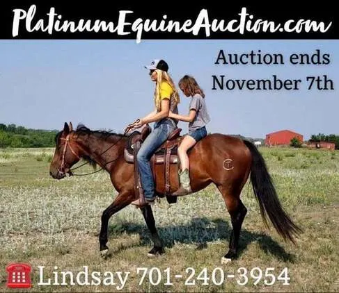 Place your bid at PlatinumEquineAuction dot com Auction ends November 7th $3500 Starting bid Missy is that once-in-a-lifetime partner you don’t want to miss, you don’t find many like her! Besides her good looks, she has a sweet and calm personality, ...