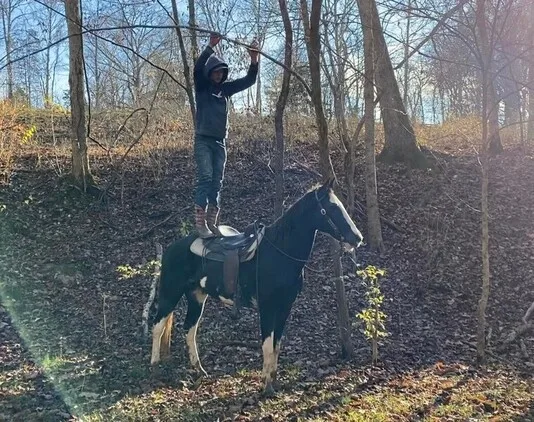 Mercedes is a beautiful black roan gelding with chrome around the edges! She is 6 years old, stands between 15.1 and 15,2hh. Mercedes has a smooth gait and is safe for any rider from the youngest to the oldest. She is a great horse who loves trail riding! She is very confident and not spooky on the trails and handles herself with ease over rough rocky areas, deep water, thick mud, steep hills and crosses downed timber. She has been trail ridden and camped in several states. She is a very easy mount, is great with washing, grooming, saddling and is friendly to handle. She is going to be a great addition to someones family for years and years to come! Call Zach with any questions at 513-508-3684.