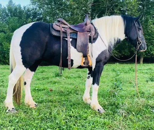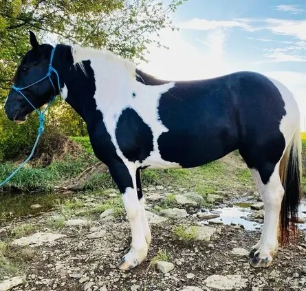 Spade is a very attractive crossbred mare standing 15 hands tall & is 12 years young. Spade is as wide as she is tall, sure footed & stout enough to pack you anywhere you would like to go, she has been ridden & packed on in the mountains on camping & hunting trips. She’s been through the swamps & brush finding loose cattle, has been on numerous trail rides. Also ridden English & western in the arena rides collected & smoothly. She is easy to get along with for anyone that knows how to ride, turns, backs & stops easily. This is a very easy keeping horse who will get you noticed wherever you take her. Spade is sound, requires no special maintenance, Has current negative coggins, stands well for the farrier & for bathing, leads, loads & ties with ease. She is out of a gypsy stud & a stout paint mare, located in Wallingford Kentucky. For any questions & all info you can contact Devon Jones at 606-748-2059 or 606-748-5970 by call or text!