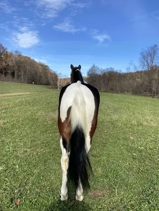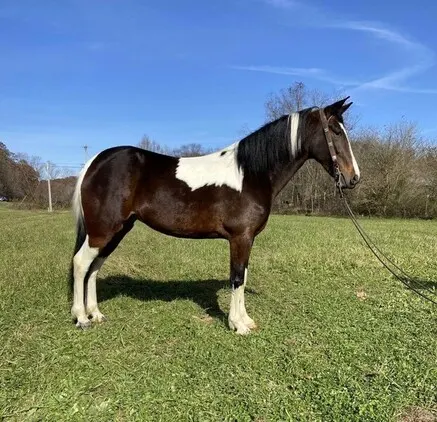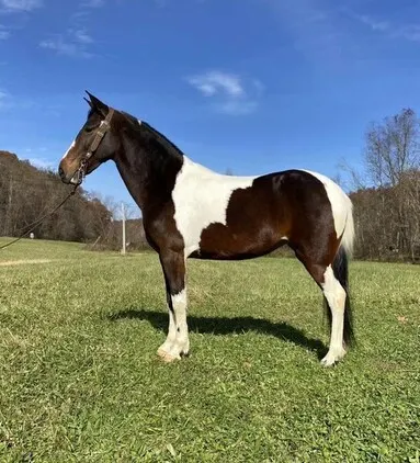 Pebbles is a beautiful bay and white grade spotted saddle mare that is 5 years and stands 15 hands tall. Pebbles is a very well broke little mare that is smooth gaited and really easy to ride, she has a silky smooth gait, relaxed walk and a nice canter making her very comfortable to ride and and easy to enjoy, her laid back temperament and willing to please attitude are the icing on the cake, pebbles is a very kind mare that doesn’t have a mean bone in her, she’s loving to people and over livestock, she does well turned out in a mixed herd or stalled in the barn, She’s 100% healthy and a very easy keeper. Call Zach with any questions at 513-508-3684. Located in Saylersville, KY.