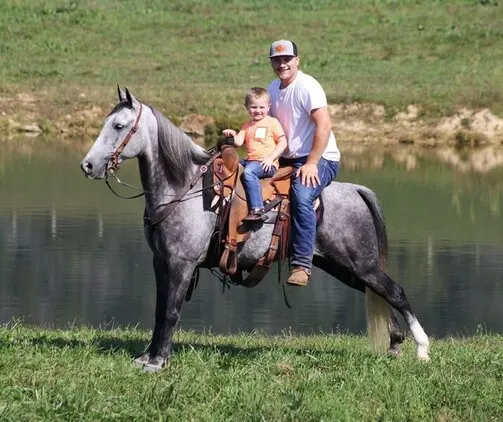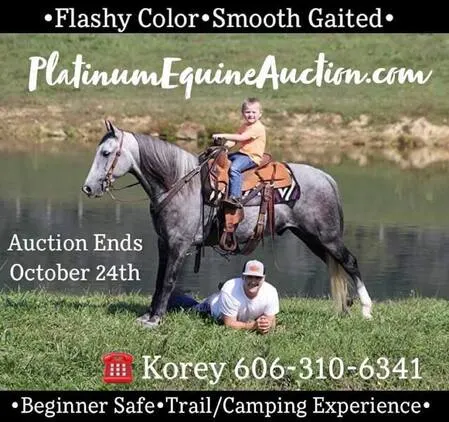 Frost Bite is a once in a lifetime horse! It’s not very often you get the chance to have a horse that’s as smart, pretty, talented, and gentle as he is! Frost Bite is a Gelding standing 14.3 hands tall, 7 years old and built like a little tank. Frost is an exceptional trail mount with all the confidence to do anything the rider asks. Frost will cross creeks and downed trees, he will climb the steepest hill or the deepest creeks you can put in front of him. Frost Bite has a wonderful 4 beat gait that is consistent from a flat foot walk all the way to a 15 MPH gait and stays smooth as glass! Frost bite is traffic safe around anything from and ATV to a semi tractor trailer. Frost Bite has been used in the local train robbery reenactment and has had guns shot off of him and never batted an eye. Frost will side pass over with easy to a mounting block to mount and dismount, he will also park out on command to mount if a block is not available. Frost Bite is a horse you only see one of in a life time! For more information please contact Korey at 6063106341. Located in Whitley City, KY.