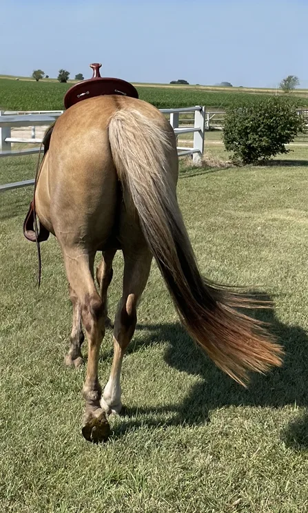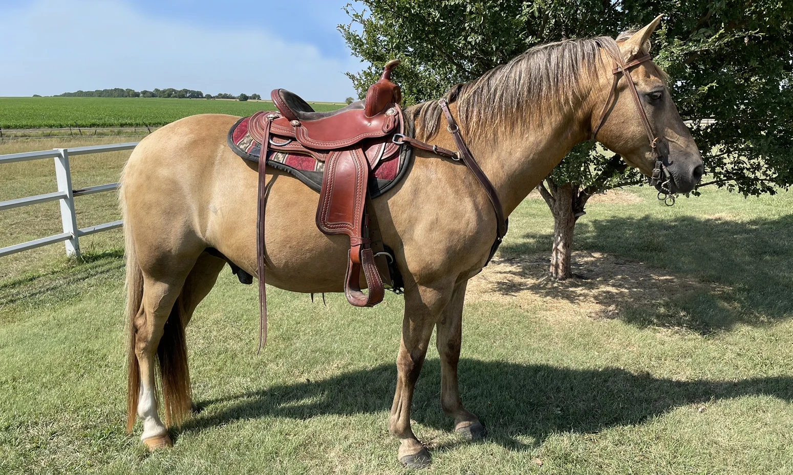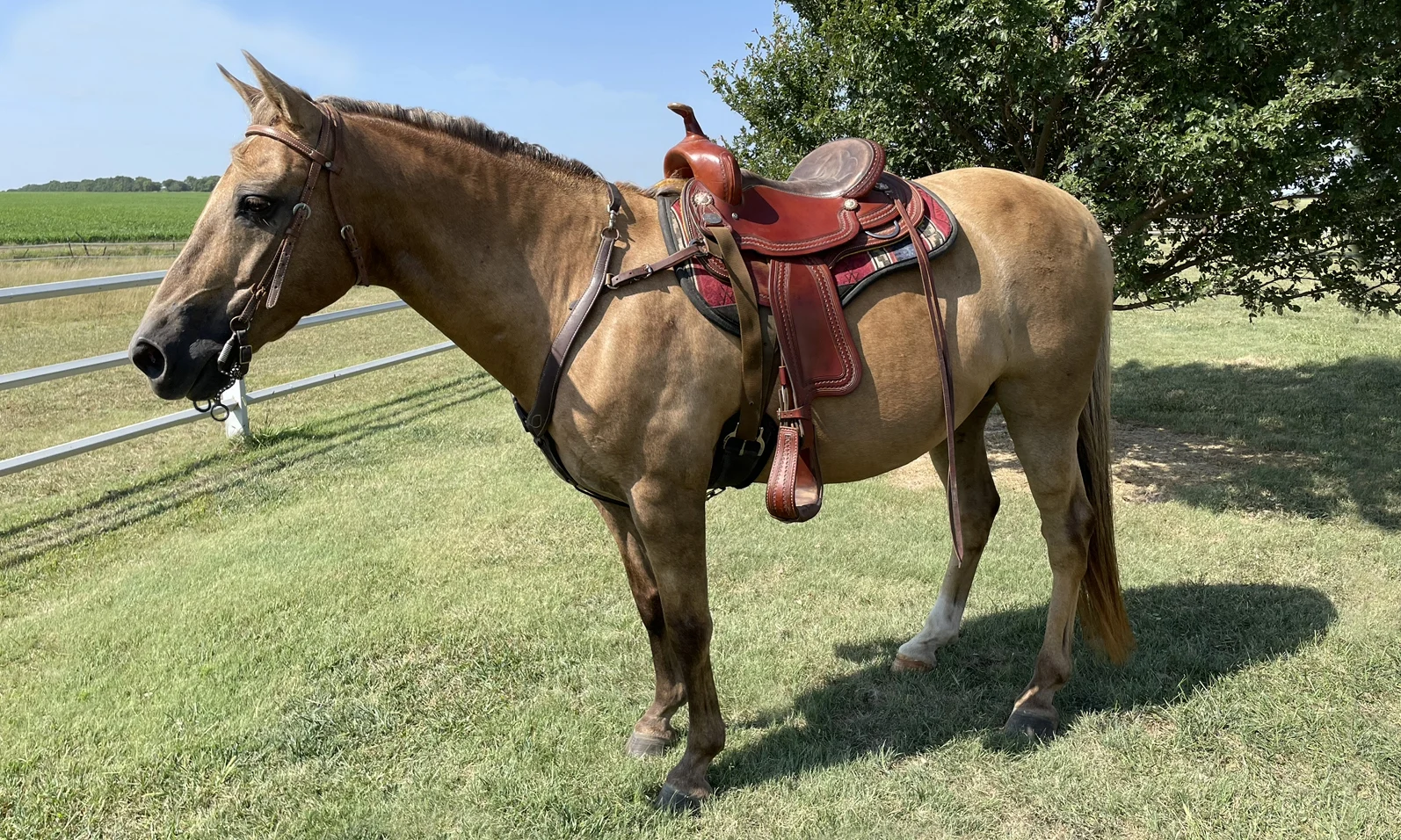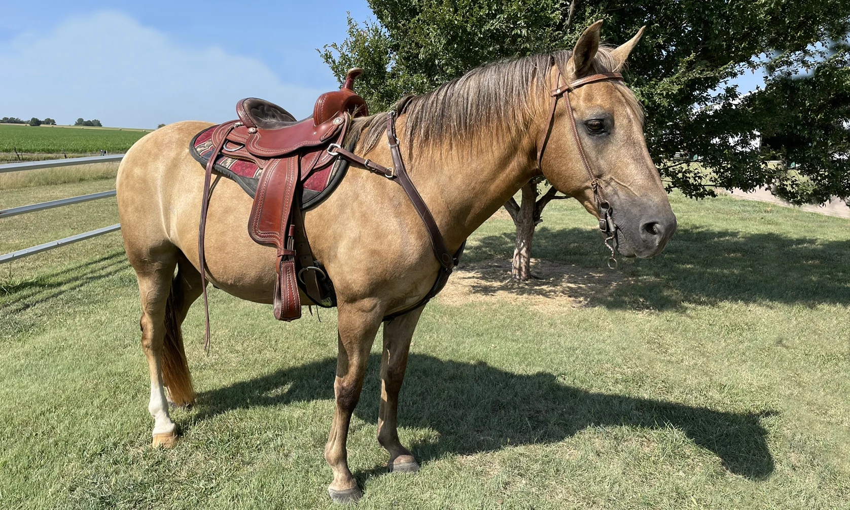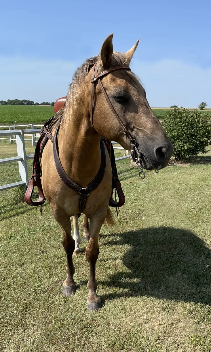 Goes willingly down trails.  He has been ridden in Missouri, Colorado, Oklahoma, and Kansas and large trial-riding horse events. Good around cattle loads easily and has nice gates. Lives on pasture, barefoot in winter shod riding season. UTD on shots and teeth floated regularly. The reason for selling was due to a death in the family. Price firm.