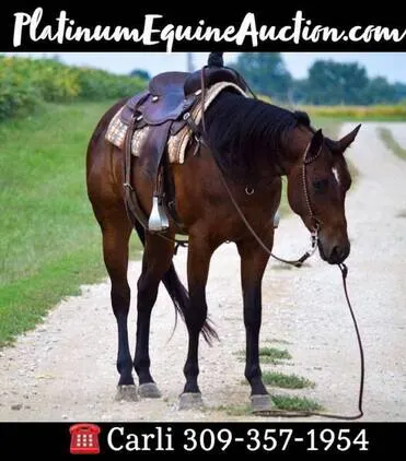 Place your bid at PlatinumEquineAuction dot com Auction ends October 31st $3500 Starting bid This sweet, versatile mare is something to look at! She is coming 4 years old and stands 15.1hh. Use her on the ranch to push cattle, rope, and check the pas...