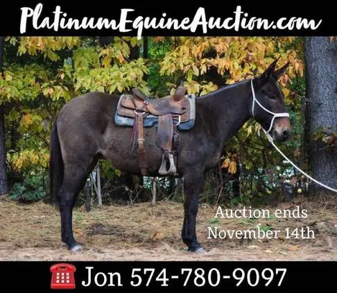 Place your bid at PlatinumEquineAuction dot com Auction ends November 14th $3500 Starting bid Annabelle is a coming 12 year old mare mule. She stands 15 hands and has a great build along with a great set of withers that will hold most any saddle. Ann...
