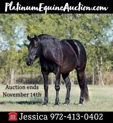 Place your bid at PlatinumEquineAuction dot com Auction ends November 14th $3500 Starting bid Meet Renegade who is a jet black, 6 yr old, 14.2hh beauty with a huge flowing mane and tail to die for… If safety AND looks are a priority he is your guy. T...