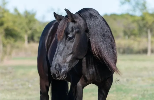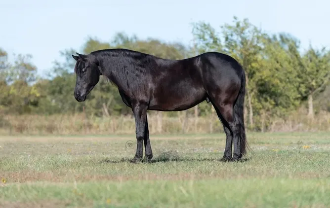 Meet Renegade who is a jet black, 6 yr old, 14.2hh beauty with a huge flowing mane and tail to die for... If safety AND looks are a priority he is your guy. Talk about unique. He turns heads wherever he goes. This sweet gelding is as bombproof as they come. He is a trail riders dream! We’ve never had one as sweet and gentle as he is. He is always easy to catch, saddle, bridle, trim, bathe, clip, haul, tie, etc. Renegade is the one we always use to carry flags at rodeos and do trick riding demos at our church. He loves attention, he meets you at the gate, and he will do anything you ask him to do with a good attitude. This gelding has very smooth gaits and he knows his leads. He has been used at playdays and has also roped the dummy. He has a nice neckrein, stops and backs good too. Renegade has been exposed to loud noises, ropes, tarps, traffic, dogs, water, bridges, huge crowds, and he takes it all in stride. I really can’t say enough good things about him. He is the kind you don’t find every day. You don’t want to miss him. Contact Jessica 972-413-0402 with any questions or to come try him in Ravenna, TX.