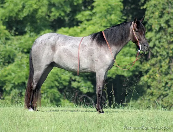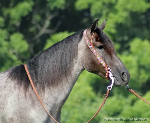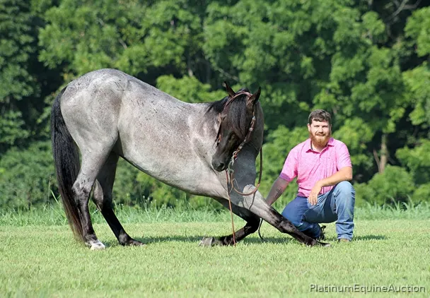 Place your bid at PlatinumEquineAuction dot com The auction ends September 19th $5000 Starting bid You have what will most likely be your one and only chance in your life to bid on a TRUE blue roan horse registered Missouri Foxtrotter!!! Everyone kno...