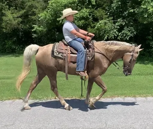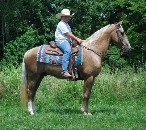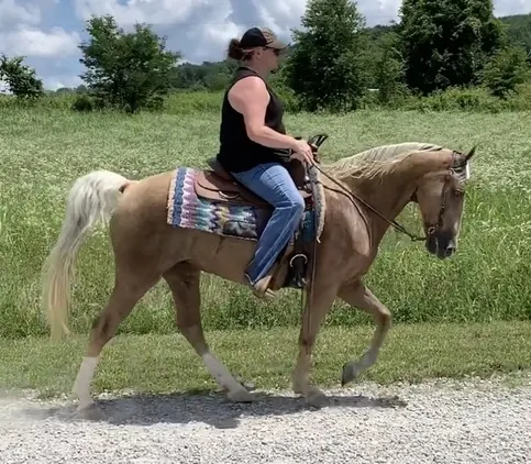 I get calls everyday from folks wanting a smaller stocky built gelding that is safe and smooth. Well my boy Dusty will check every box! He is a 14.3hh 10 year old Mountain Horse gelding that is registered in the PSHR. Dusty came from an older lady in Western Ky who has trail rode Dusty all over Shawnee National Forrest and Land Between the Lakes. Over the last 5 years there wasn’t very many weekends that she didn’t spend on the back of this golden hunk. Dusty knows his job and loves doing it. He is easy to catch, handle, clip and bathe.